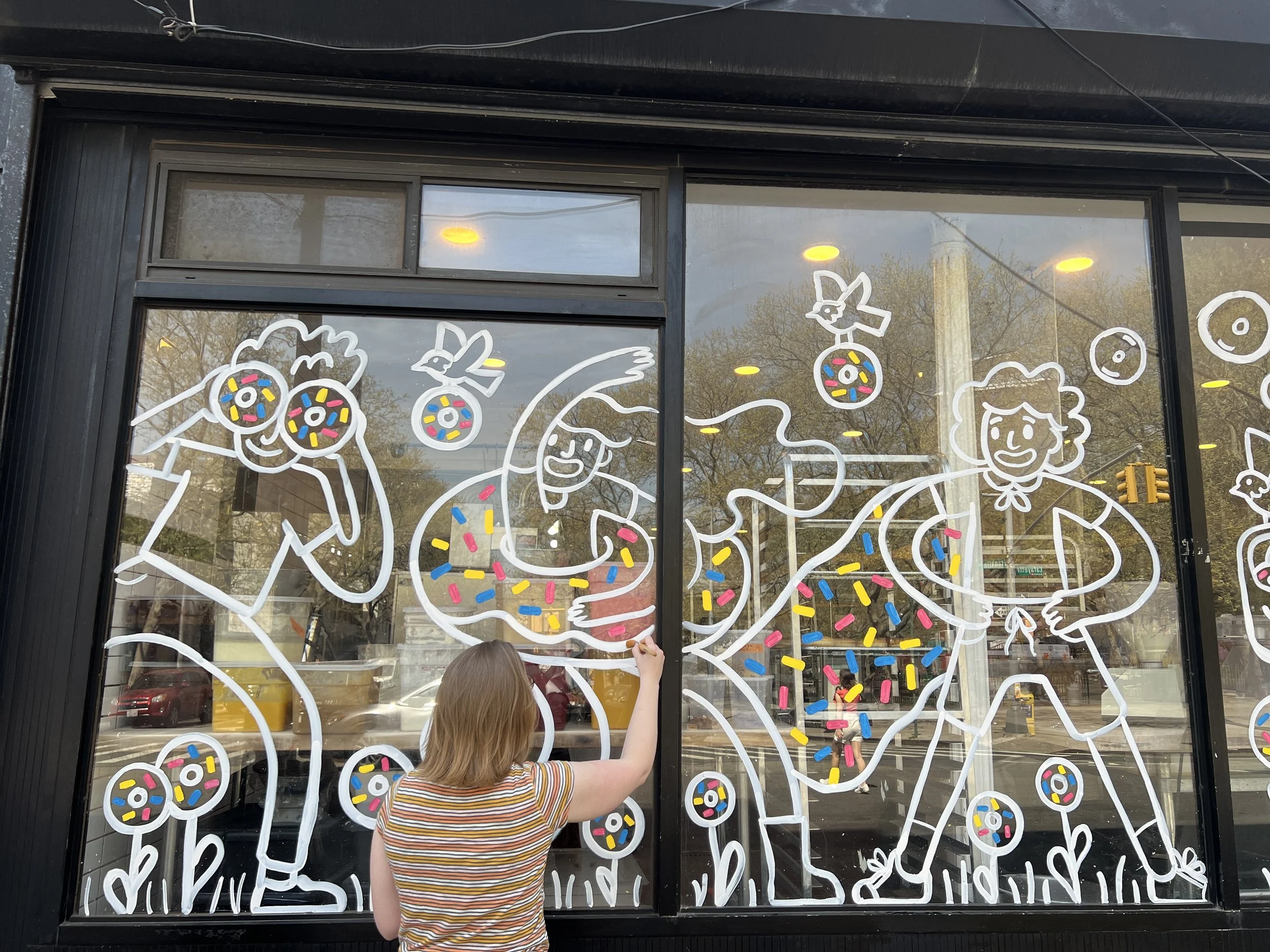I was so thrilled to work with Fany Gerson on the annual Chocolate Donut Festival at Fan Fan. This year’s theme was “Childhood Forever” which sent my mind into images of a playground made of rainbow sprinkled donuts. In collaboration with Fany, I illustrated both a poster for the event and a mock-up of the window mural design. I had so much fun painting these characters and adding a few pops of color. The festival may be over, but be sure to swing by Fan Fan Donuts next time you’re in the neighborhood. You have to try the guava and cheese!